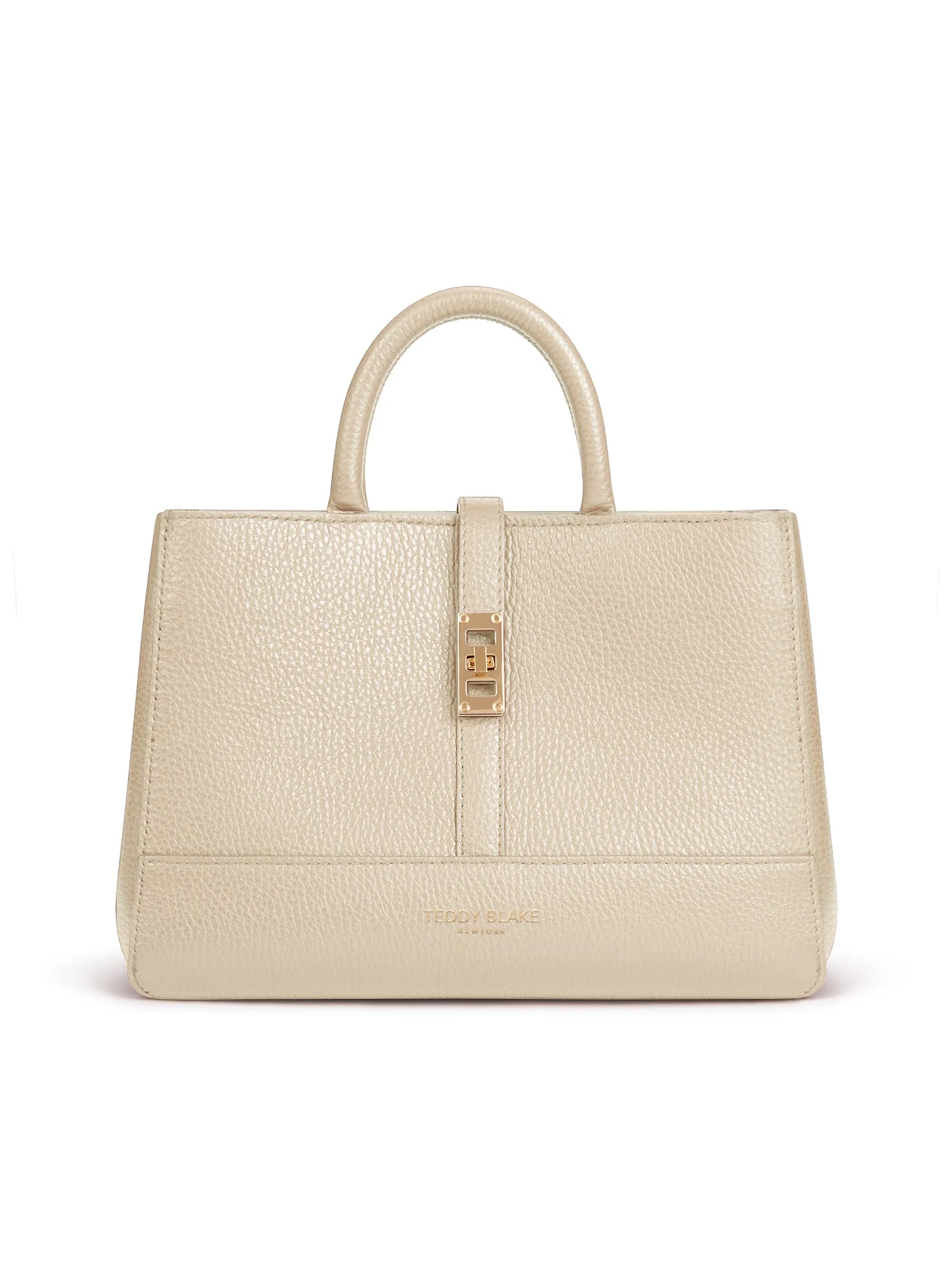 Fashion & function describes the Lola bag, the latest addition to Teddy Blake's line. Crafted in Italy from soft pebbled leather, the boxy silhouette offers versatility with double top handle, shoulder strap, and a spacious, suede-lined interior. Adorned with gold detailing the center strap closure ads a dash or retro chic to its modern appeal. Style the Lola your way, every day from the office into the city.