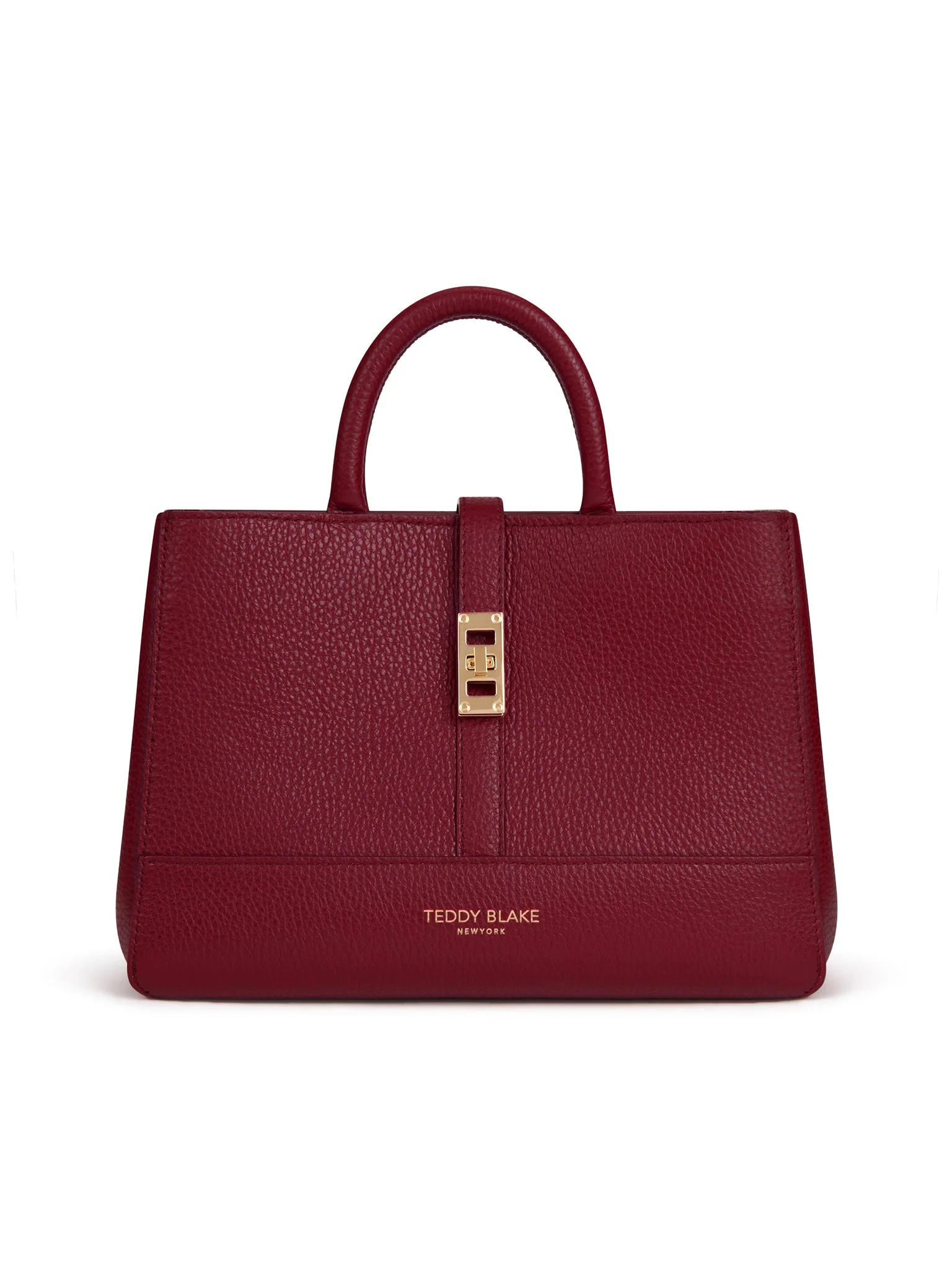 Fashion & function describes the Lola bag, the latest addition to Teddy Blake's line. Crafted in Italy from soft pebbled leather, the boxy silhouette offers versatility with double top handle, shoulder strap, and a spacious, suede-lined interior. Adorned with gold detailing the center strap closure ads a dash or retro chic to its modern appeal. Style the Lola your way, every day from the office into the city.