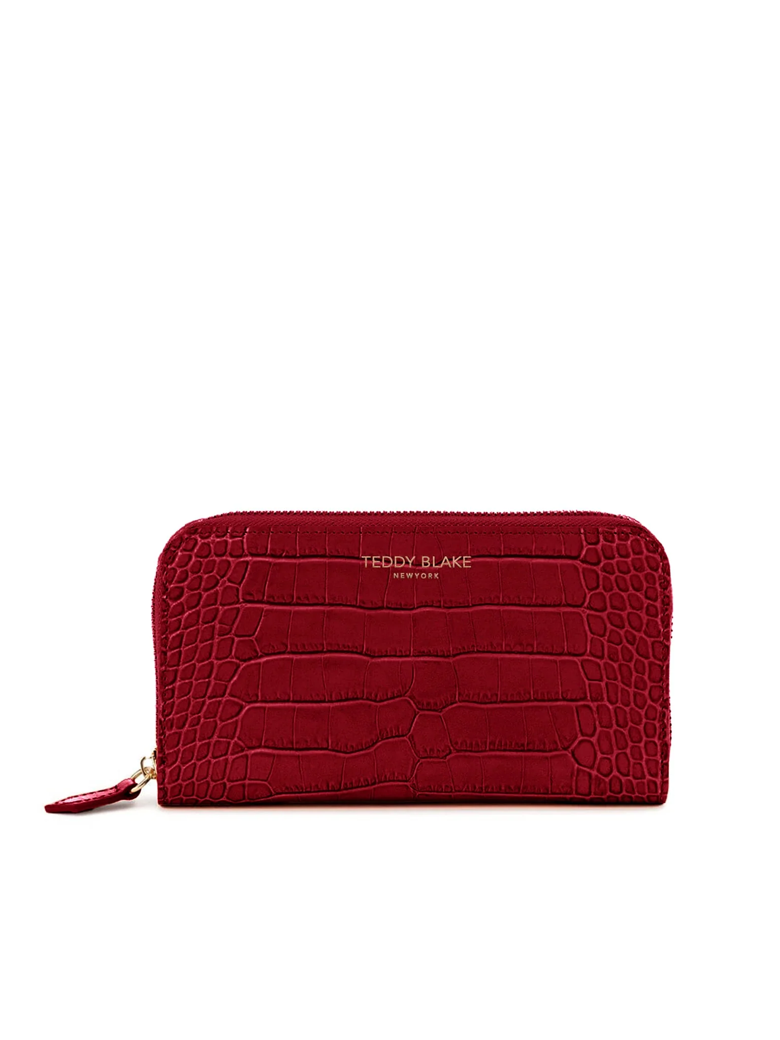 Teddy Blake's new wallet line makes an elevated addition to your accessories edit. Crafted in Italy from croco embossed calf skin, the classic style opens to reveal a matching interior with a central zip compartment and multiple organizational features.