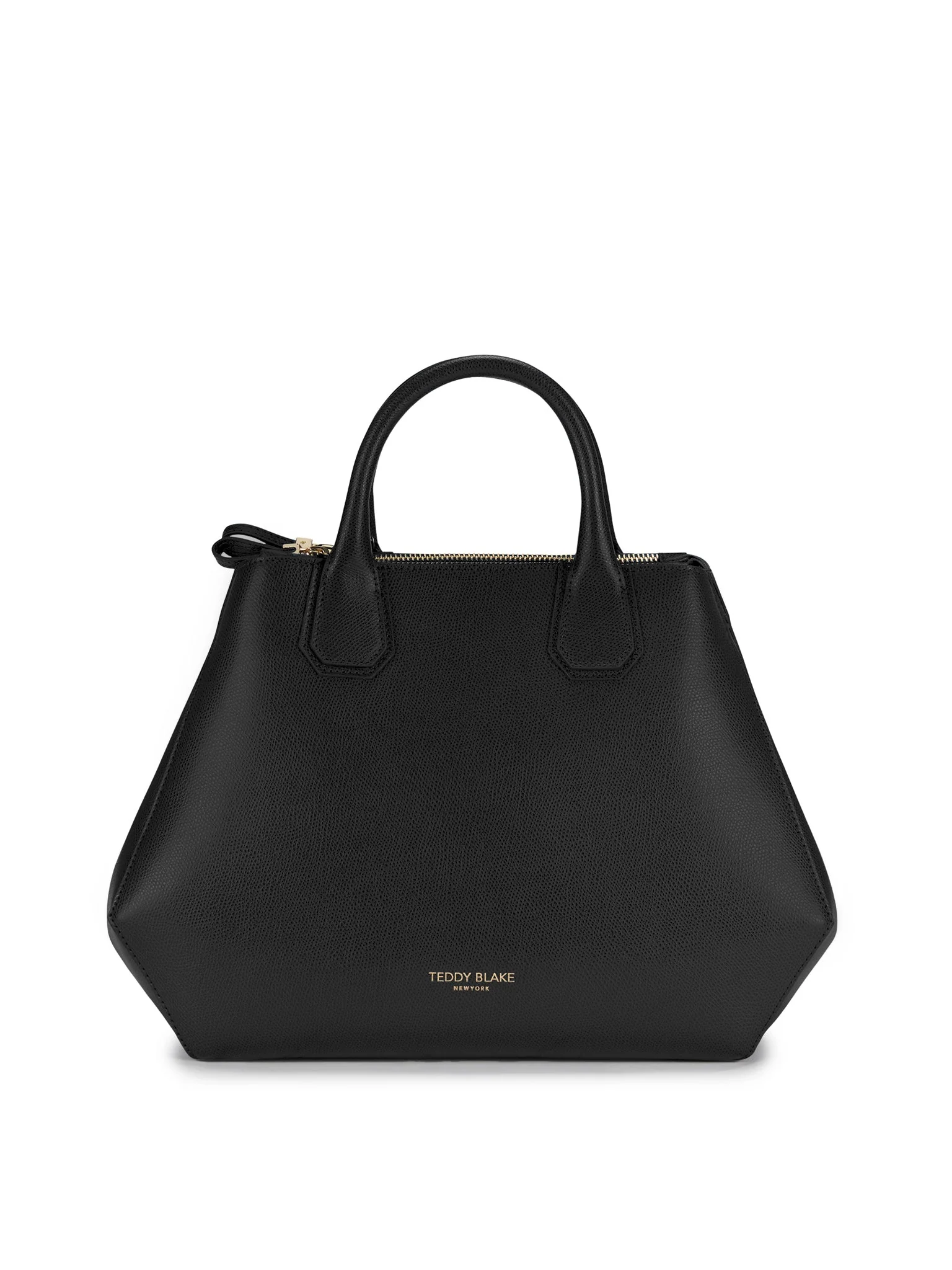 The geometrical shape of the New Vera bag adds an intricate touch to a classy look. Crafted in Italy the structured silhouette is made with semi-rigid grain leather to withstand time and everyday wear. The Vera top handle bag features 2 large zipper pockets and a soft elegant interior making it the perfect choice for everyday wear.